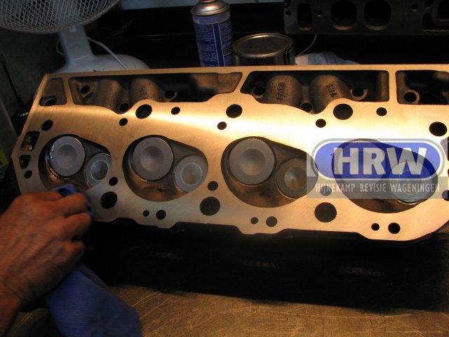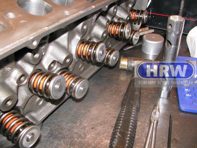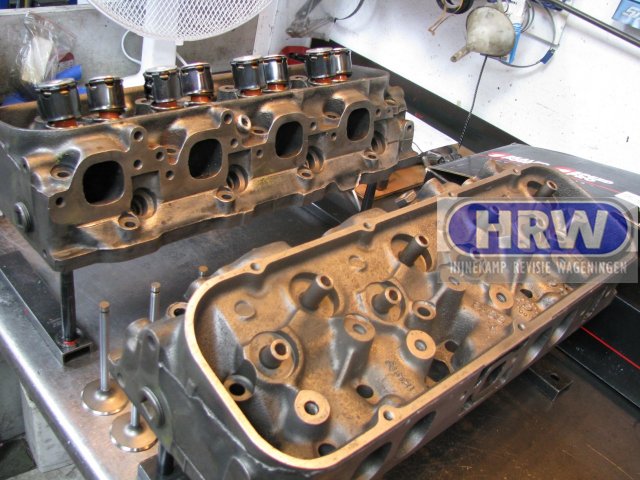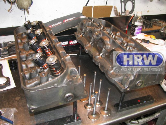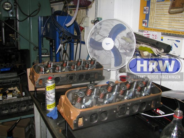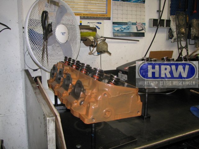 Toen we de cilinderkoppen demonteerden bleken de zuigers ook oranje gespoten te zijn. De cilinderkoppen bleken ook niet de originele en pasten daarom slecht.