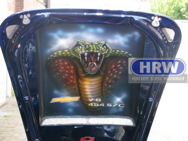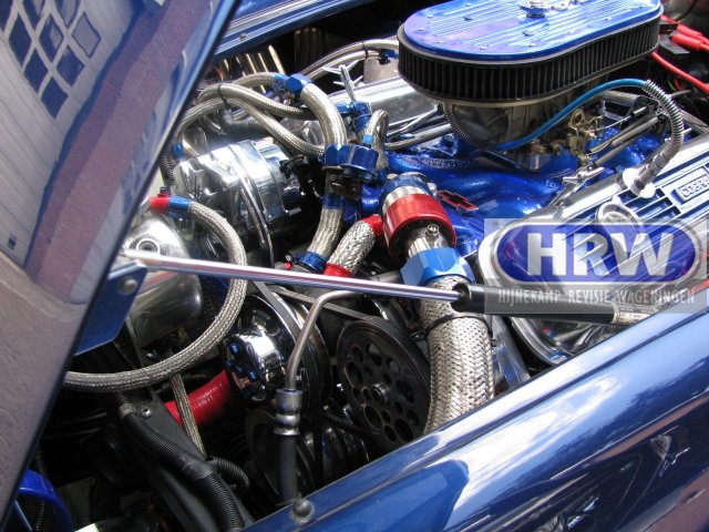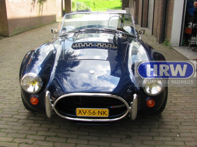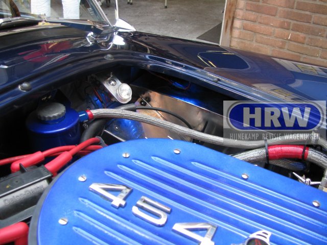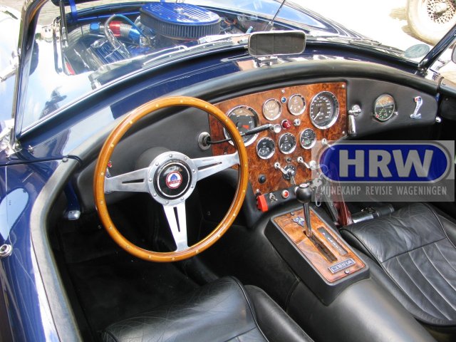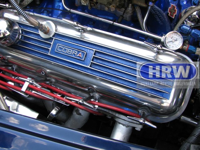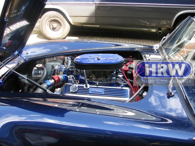 Deze AC Cobra is een replica met een 454 big blok. (454 cubic inches = 7,4 ltr)